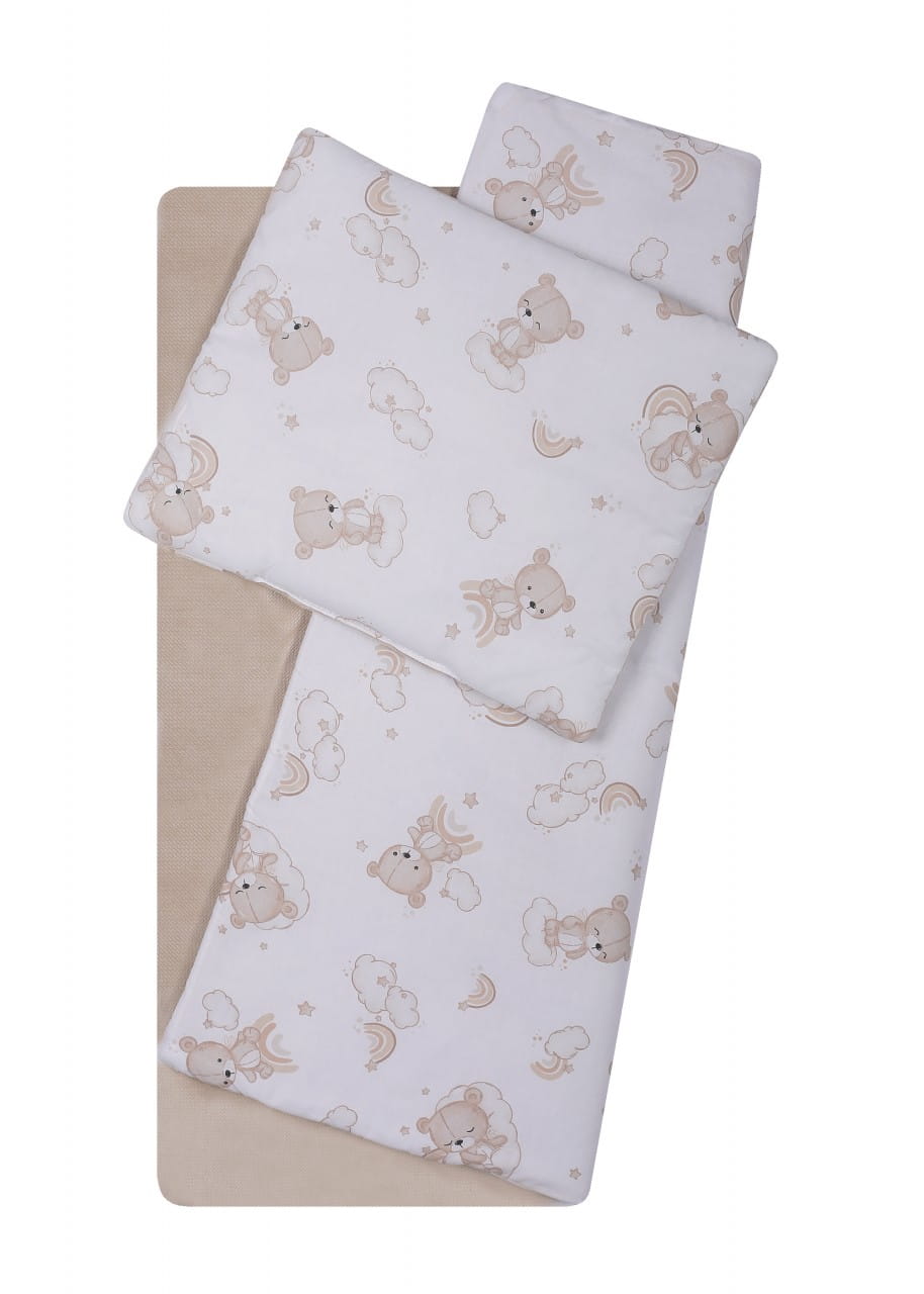 Komplet do wózka dla niemowlaka - pled i poduszka Duetbaby Misie na chmurkach beżowy