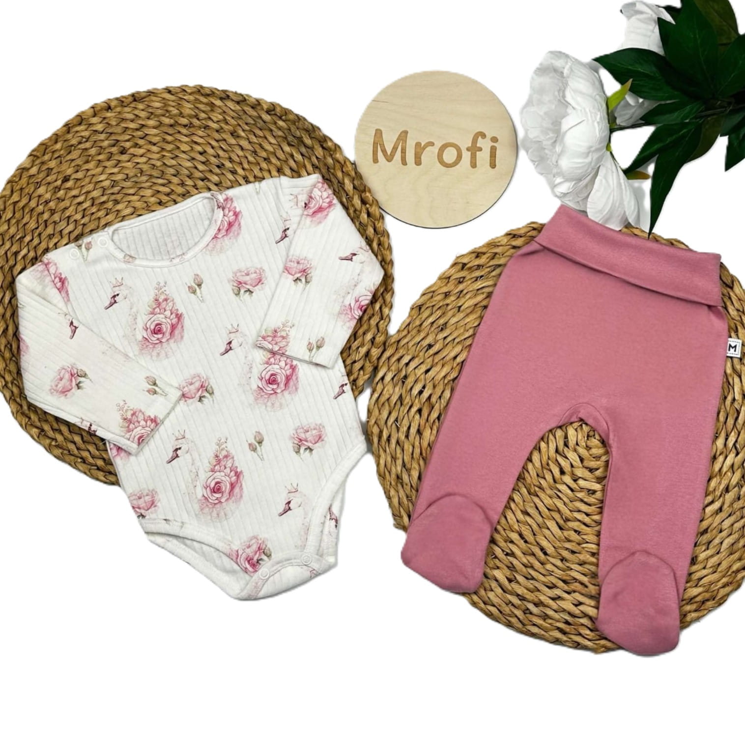 Komplet ubranek dla dziewczynki body i półśpiochy Mrofi Elza – delikatność, wygoda i styl w jednym zestawie