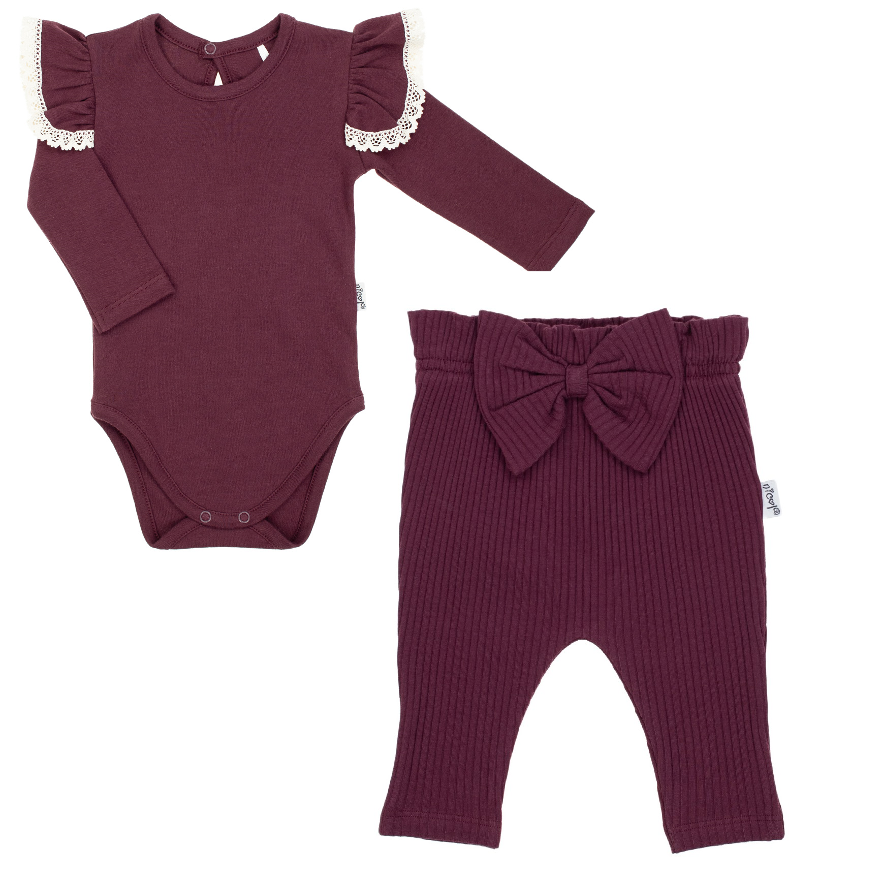 Komplet Alisa w kolorze burgundowym to doskonała baza do tworzenia wielu stylizacji. Można nosić elementy razem – jako gotowy zestaw – lub osobno, łącząc je z innymi ubrankami. To idealne rozwiązanie na każdą okazję – od spaceru po rodzinne uroczystości.