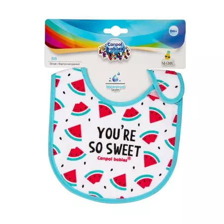 Śliniaczki z ceratką z kolekcji "SO COOL" ze wzorem arbuza ochroni ubranie dziecka przed zabrudzeniem podczas posiłku. Wykonany z miękkiej bawełny nie podrażnia delikatnej skóry dziecka, a folia znajdująca się od spodu zabezpiecza ubranie przed przemoknięciem. Śliniak ceratkowy Canpol Babies zapinany na rzep.