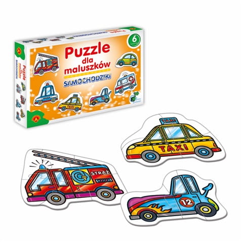 Oto początek pięknej przygody dziecka z puzzlami. Atrakcyjna kolorystyka, przyjemna forma samochodzików, proste i nieskomplikowane elementy pozwolą maluchom rozpocząć naukę pierwszych puzzli. Dzięki grubości puzzli 3mm maluchom łatwo będzie chwytać i dopasowywać do siebie elementy. Każdy zestaw składa się z 6 obrazków, które są podzielone odpowiednio na: 1,2,3,4,5,6 i 7 klocków. Dzięki temu możesz stopniowo zwiększać poziom trudności swojemu maluchowi.