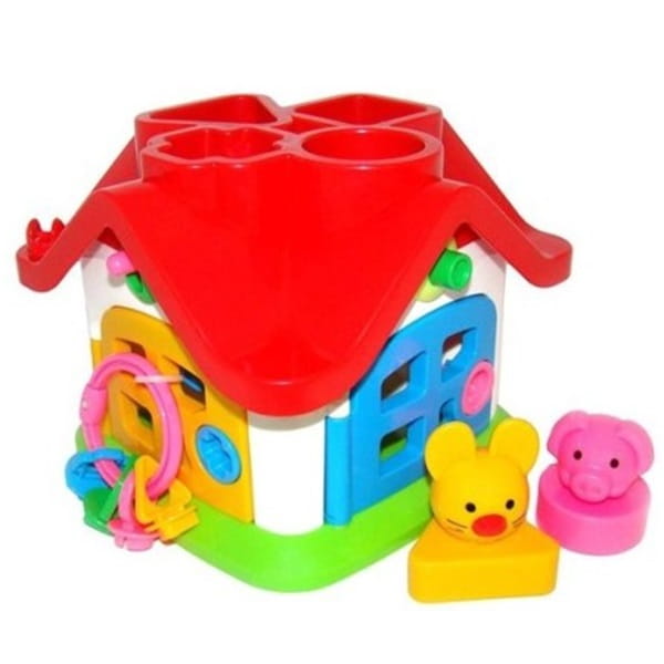 Edukacyjny domek - sorter kształtów! Dzieci uczą się rozpoznawania kształtów takich jak: kwadrat, trójkąt, koło oraz krzyżyk. Dodatkowo, aby otworzyć poszczególne drzwi domku dzieci muszą dopasować odpowiednie kluczyki pod względem koloru i kształtu. Wesołe zwierzątka w różnych barwach umilą każdą zabawę połączoną z nauką.