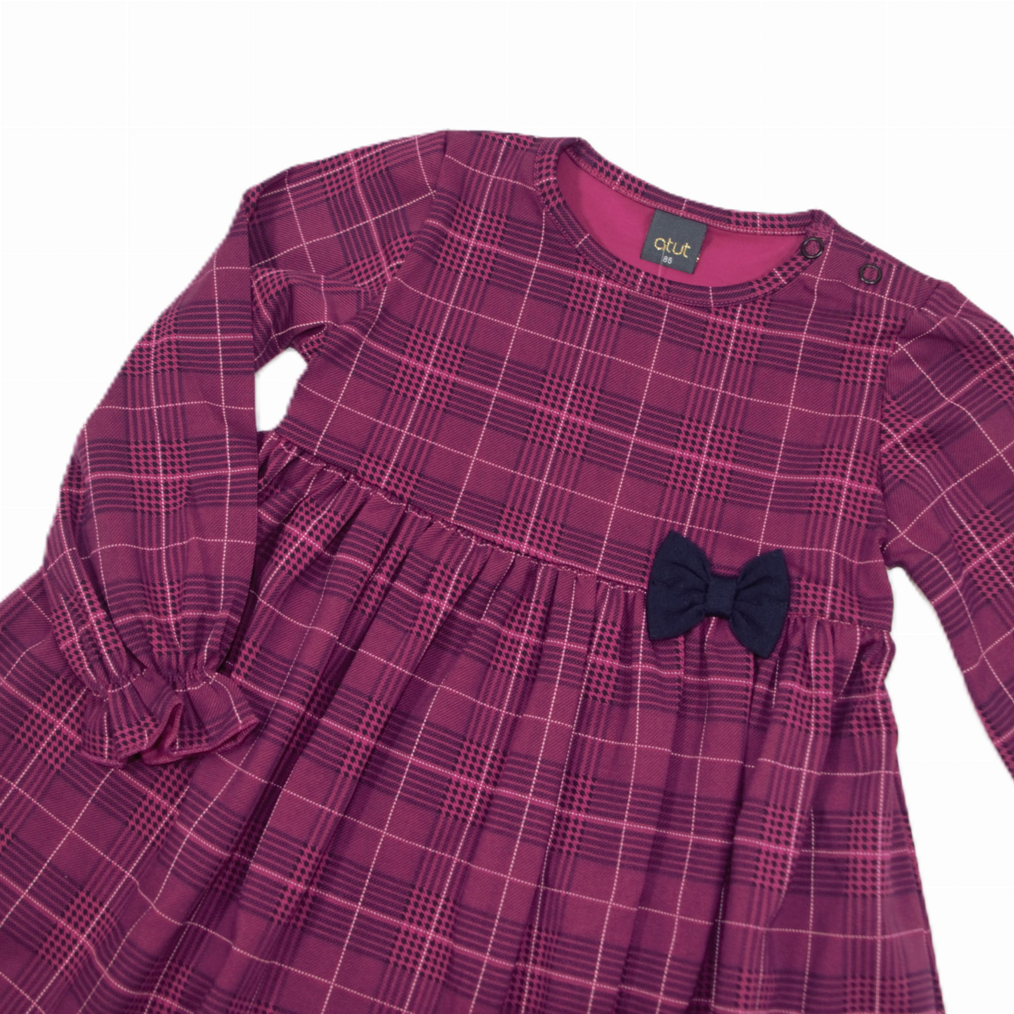 Elegancka sukienka w kratę dla dziewczynki z kokardką Atut