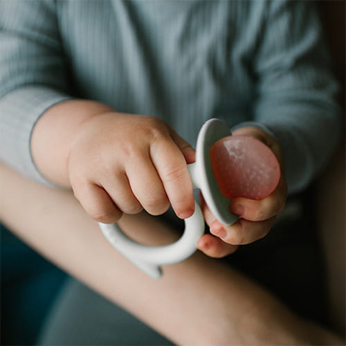 Specjalne wypustki na powierzchni gryzaka delikatnie stymulują dziąsła, pomagając zmniejszyć ból i dyskomfort związany z wyrzynaniem się pierwszych ząbków. Produkt jest w pełni bezpieczny dla dziecka i może być stosowany już od pierwszych miesięcy życia.