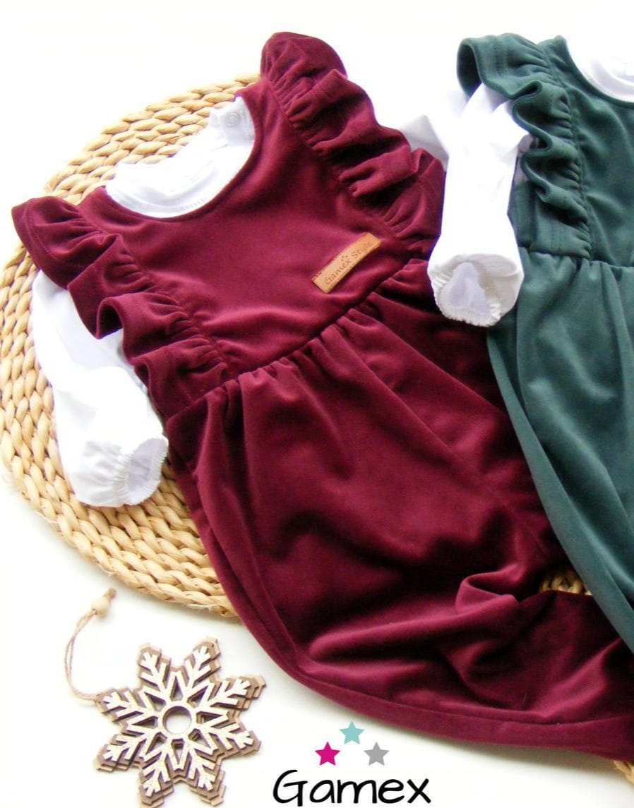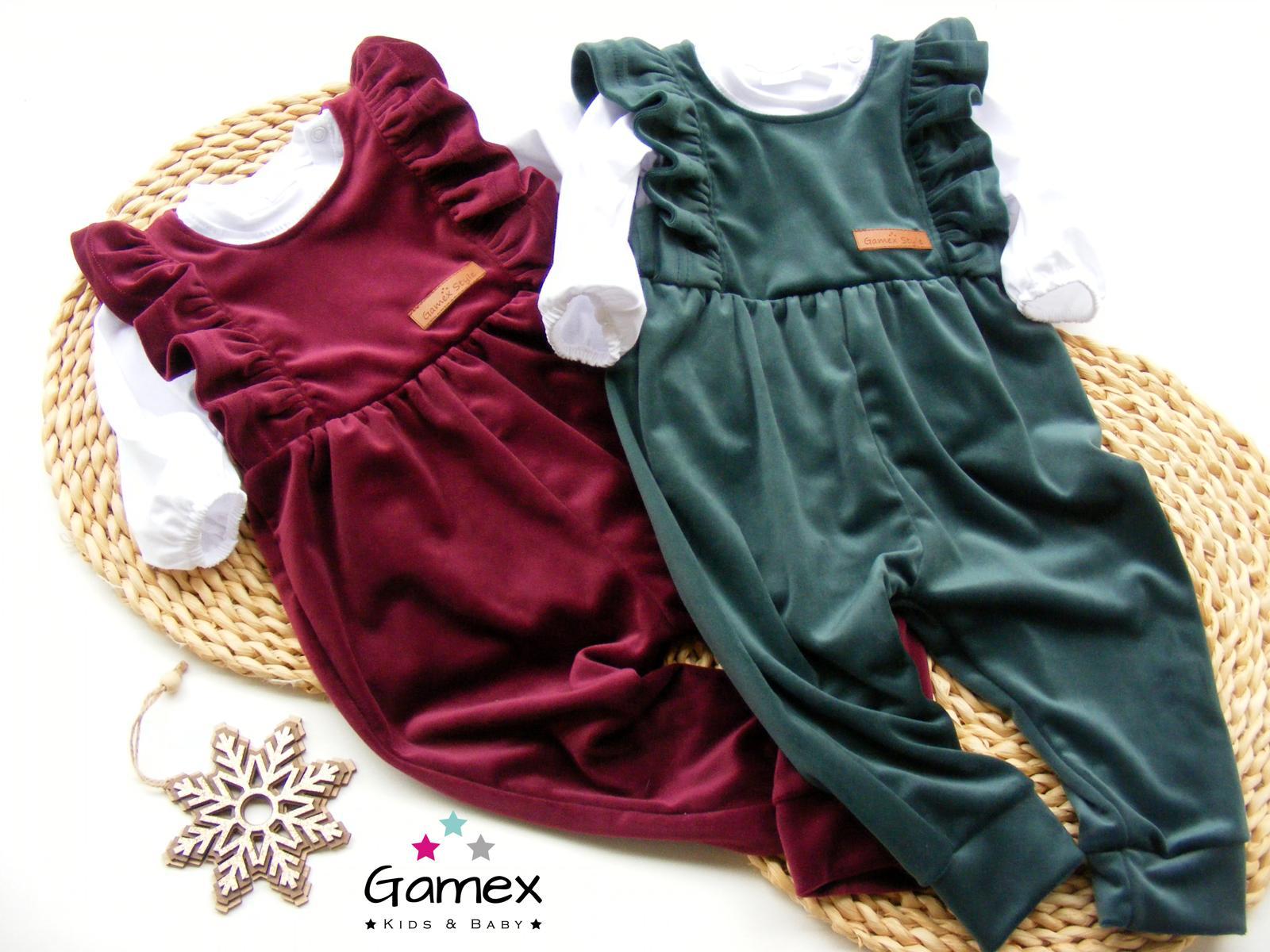 Kombinezon welurowy i body dla dziewczynki Gamex Welur bordowy