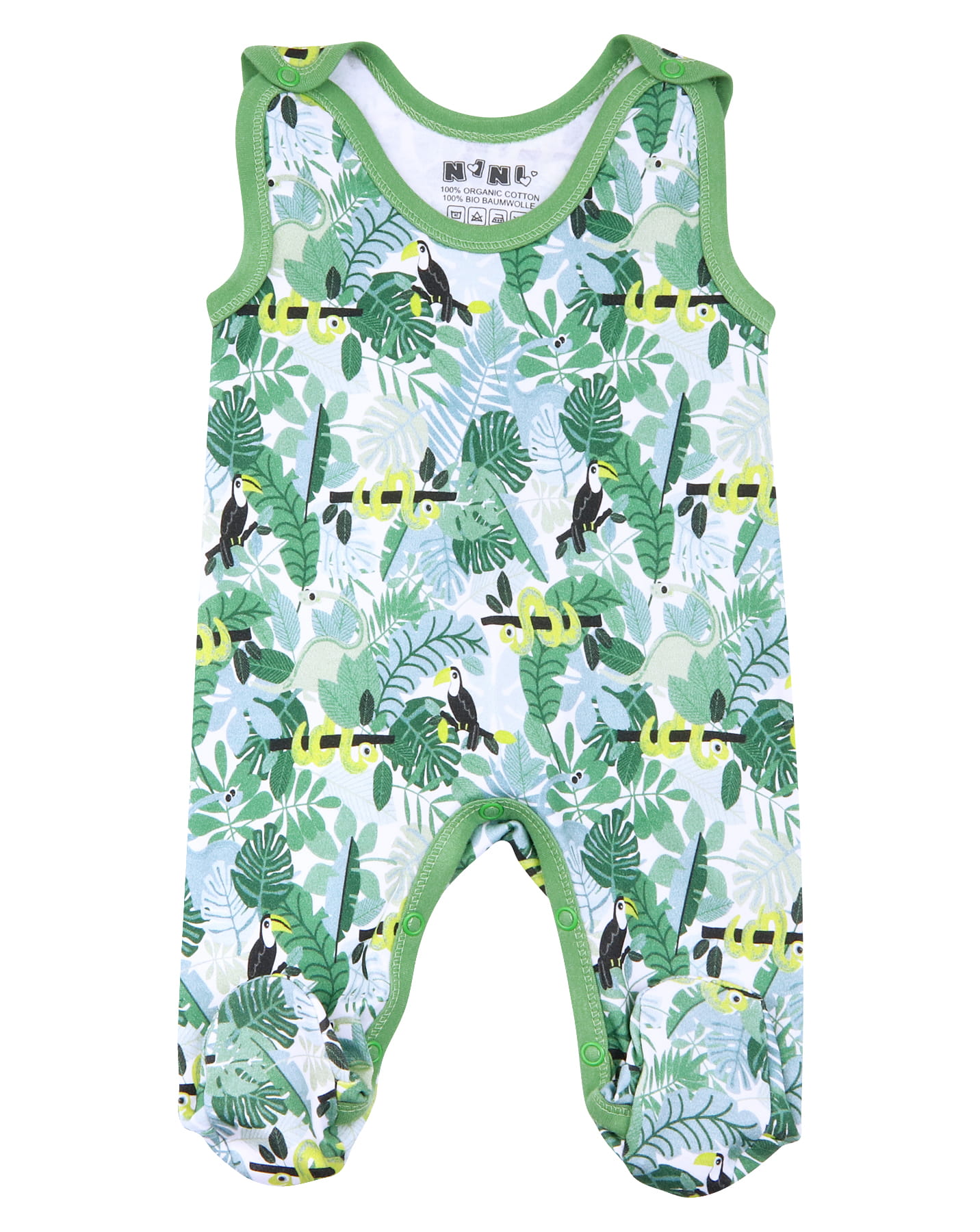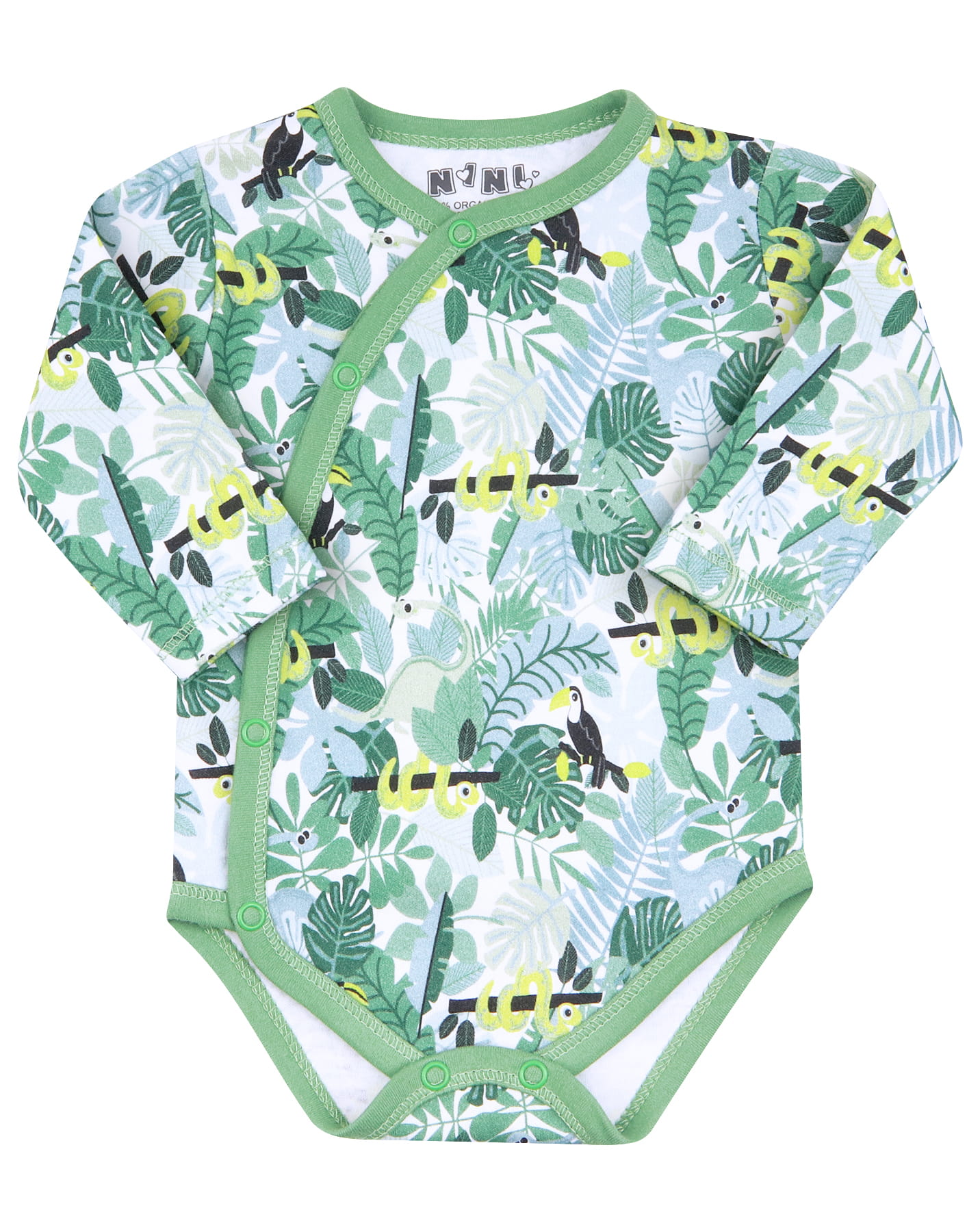 Kolorowy zestaw ubranek niemowlęcych o wzorze Tukan to piękne śpioszki i bodziaki dla chłopca. Ubranka wykonane zostały w 100% z bawełny organicznej. Najwyższej jakości materiał nie tylko dba o delikatną skórę Twojego malucha, ale także o środowisko naturalne. Śpioszek rozpinany jest w kroku, dzięki czemu z łatwością zmienisz pieluszkę swojemu maluchowi. Komplet śpioszek z bodziakami w pięknym kolorze butelkowej zieleni i z kolorowymi aplikacjami Zwierzątek spodoba się każdemu. Body zapinane są kopertowo, co znacznie ułatwi zakładanie i ściąganie.