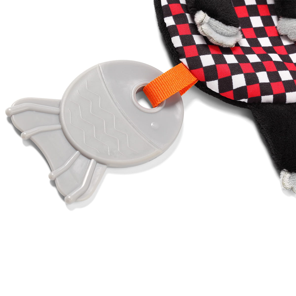 Przytulanka Felix to piszczek, szeleścik oraz kolorowe tasiemki w jednym! Zabawka uczy nowych umiejętności od ćwiczenia uchwytu, poprzez stymulację pracy dziąseł za pomocą gryzaków z wypustkami, aż do poznawania różnych faktur materiałowych. Zabawka utrzymana jest w wyraźnych, kontrastujących barwach, które rozwijają zmysł wzroku, wyobraźnię i umiejętność koncentracji.