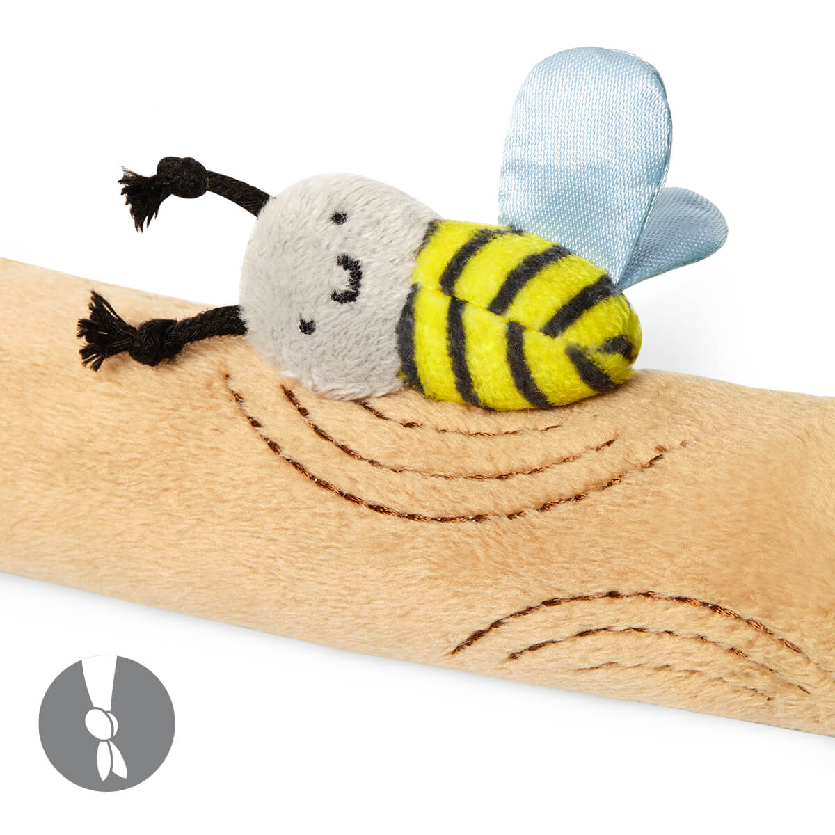 Zabawka posiada szeleszczące elementy ukryte w liściu zaciekawią dziecko i przykują jego uwagę.