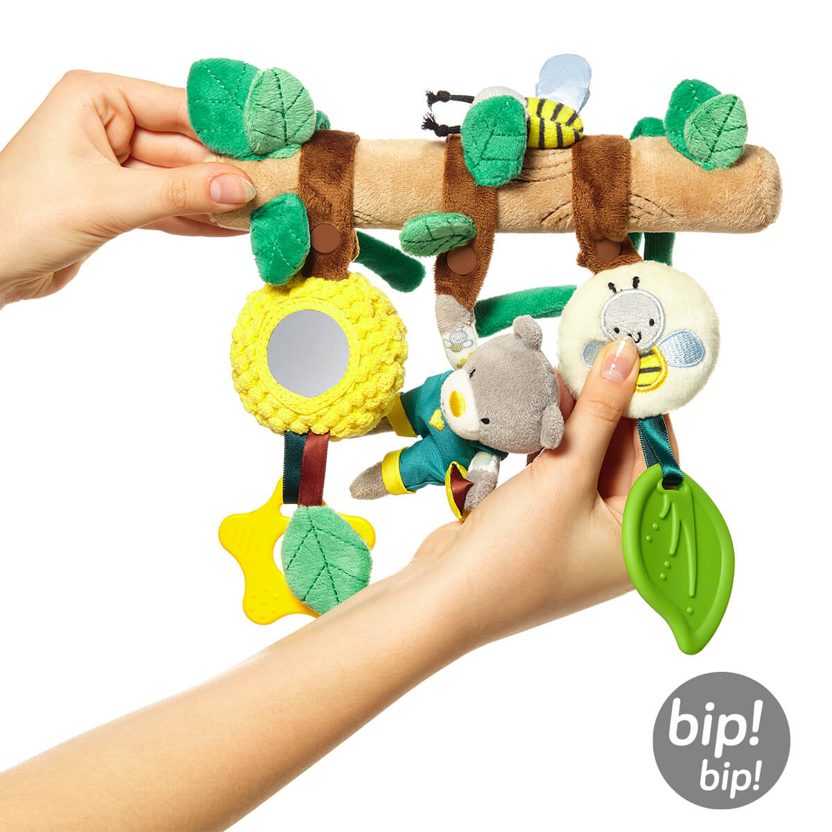 Zabawka w formie pałąka umożliwia zawieszenie jej na wszelkiego rodzaju fotelikach, łóżeczkach, czy wózkach. Dzięki temu może ona towarzyszyć dziecku w domu, a także podczas podróży i spaceru.