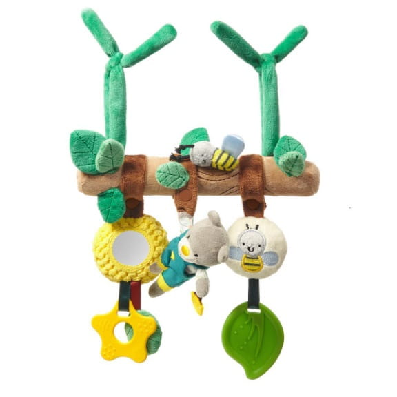 Zabawka składa się z kilku części, które można przesuwać oraz odpinać. Dzięki temu dziecko może uczyć się myślenia przestrzennego. Z odpinanymi zabawkami możesz stworzyć różne wersje pałąka - każdego dnia zawieszać inną z nich, dzięki czemu maluch tak szybko się nie znudzi.