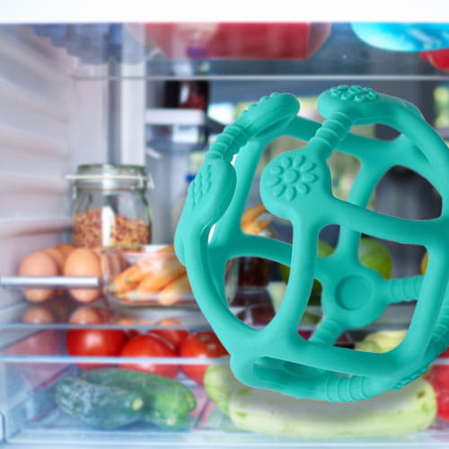 Materiał, z którego stworzony jest gryzak Babyono ORTHO pozwala na obniżenie temperatury w lodówce dla stworzenia dodatkowego ukojenia dla dziecka.