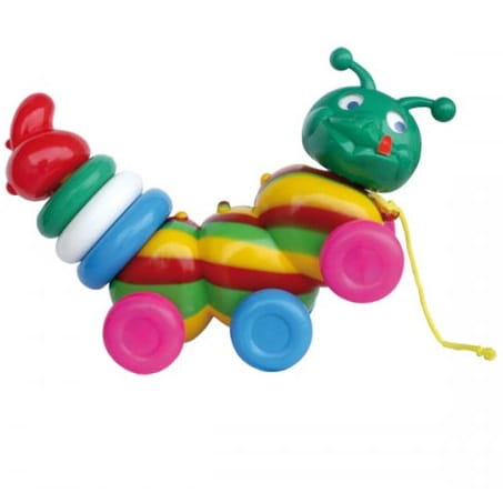 Zabawka w formie gąsienicy do ciągnięcia spełnia wiele funkcji. Postawą zabawki jest miękki korpus z główką oraz trzpieniem na ogon, na który nakłada się miękkie pierścienie z ogonkiem. Zabawki pełni funkcję piramidki oraz ciągadełka. Zaciekawi malucha na długo!