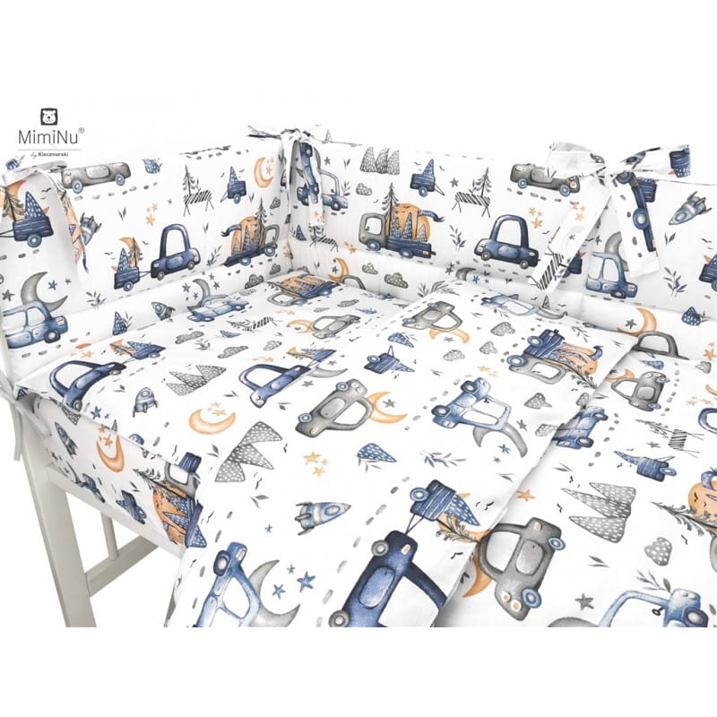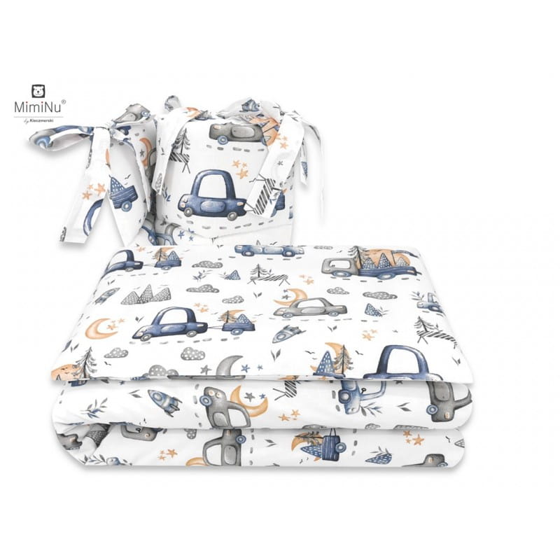 Pościel 3 elementowa do łóżeczka 120x90 kołderka , poduszka 40x60 z ochraniaczem Samochodziki niebieska