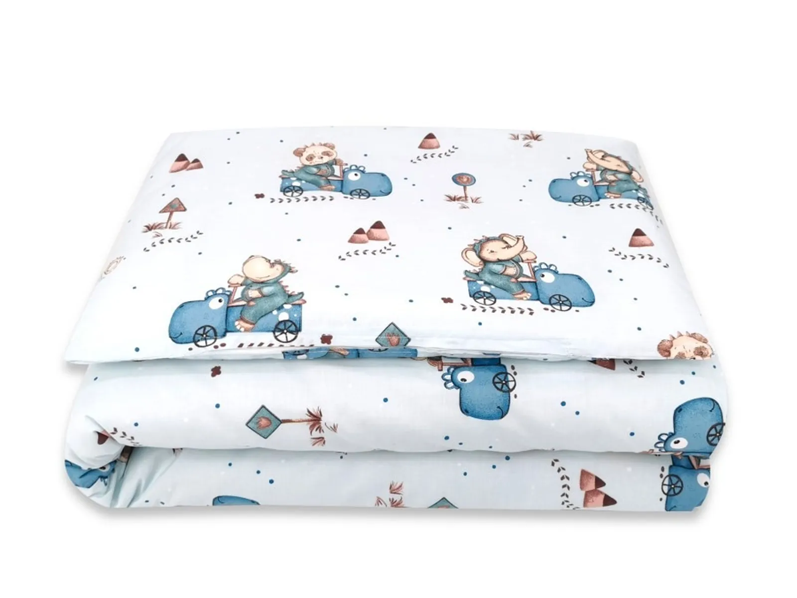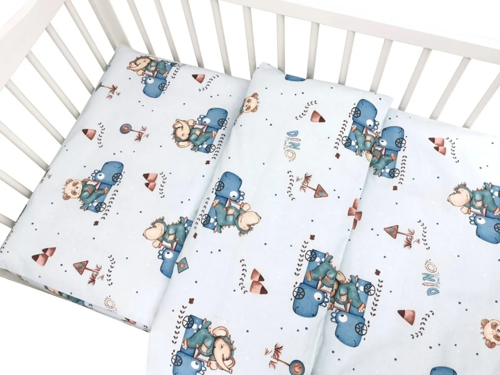 Pościel do łóżeczka 2 elementowa kołderka 135/100cm, poduszka 40/60cm Dino w autkach