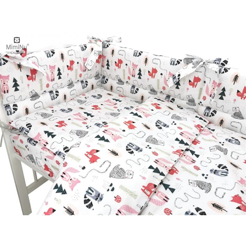Pościel do łóżeczka dla niemowląt 135x100 cm kołderka, poduszka 40x60 cm z ochraniaczem Lisek róż