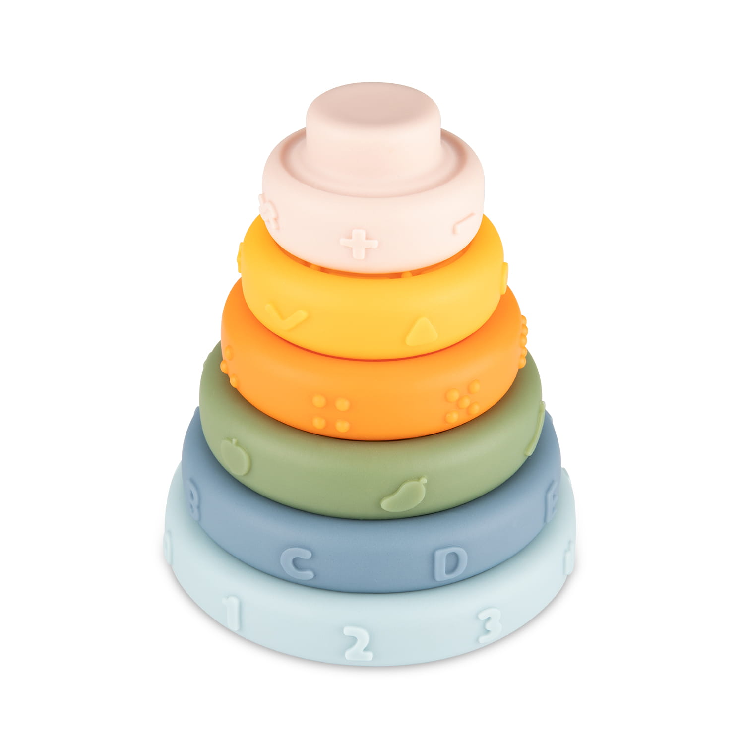Sensoryczna układanka Canpol babies piramidka pomaga w nauce rozróżniania kolorów i wielkości, wspiera koordynację oko-ręka u dziecka. Każda warstwa piramidy ma wypustki o różnych kształtach – cyfry, literki, kropki itp., dzięki czemu Maluszek może dotykać je paluszkami poznając nowe faktury aktywizując zmysł dotyku lub „smakować” – poszczególne elementy świetnie sprawdzą się jako gryzaki.