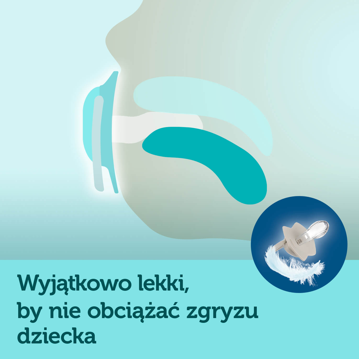 Posiadają wyjątkowo miękka silikonową gumkę o prostym (symetrycznym) kształcie. Smoczki są wyjątkowo lekkie i posiadają profilowaną tarczkę.