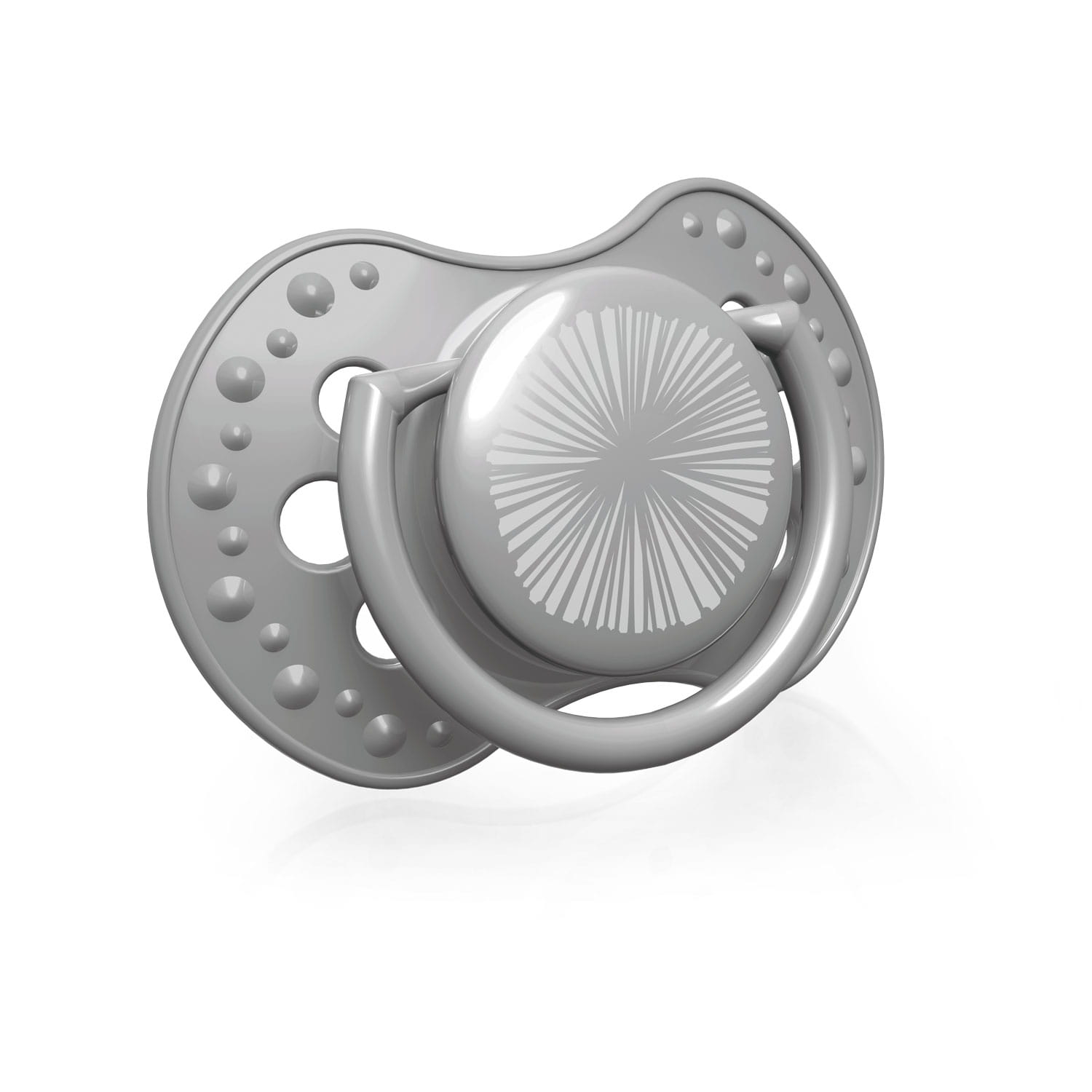 Tarcza smoczka została wyposażona w otwory, które umożliwiają swobodny przepływ powietrza i zapobiegają podrażnieniu delikatnej skóry niemowląt i dzieci.