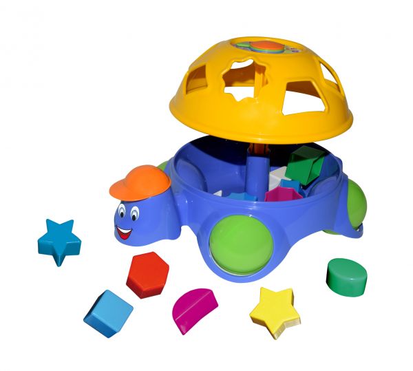 Zabawka edukacyjna "żółwik" wykonana z przyjemnego w dotyku plastiku. W zestawie znajdują się specjalne klocki o różnych kształtach, które wkładane mogą być tylko w odpowiednie dla nich otwory. Dzieci uczą się rozpoznawania kształtów i ćwiczą koncentrację. Produkt łatwo utrzymać w czystości przecierając wilgotną ścierką. Zabawka występuje w wielu zestawach kolorystycznych - kolor wybierany losowo!