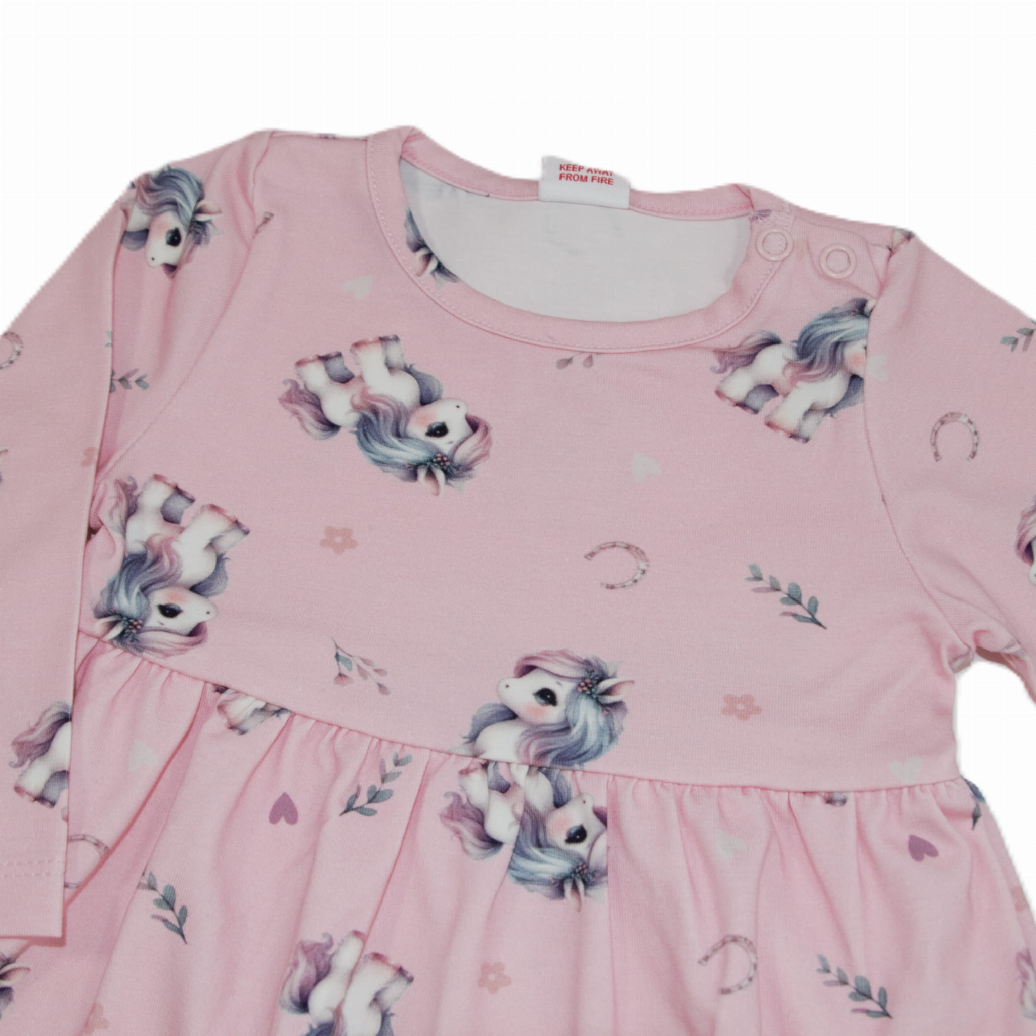 - Dzięki swojemu unikalnemu wzorowi w koniki sukienka będzie świetnym wyborem na różne okazje: urodziny, przedstawienia w przedszkolu, rodzinne spotkania, uroczystości i codzienne wyjścia.