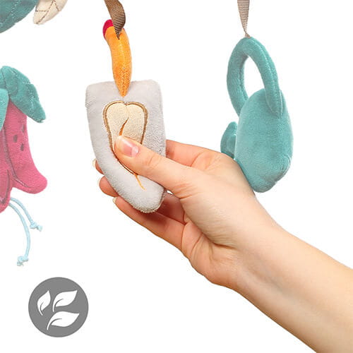- SZELESZCZĄCE ELEMENTY - Szeleszczące elementy zaciekawią dziecko i przykują jego uwagę.