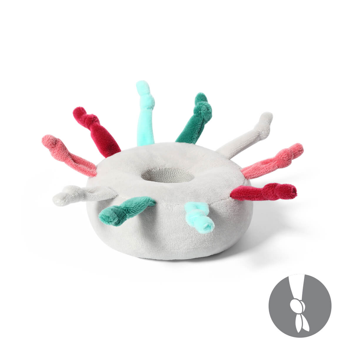 - MIĘKKIE GRYZAKI - Dołączony do zabawki miękki silikonowy gryzak koi podrażnione dziąsła podczas ząbkowania.