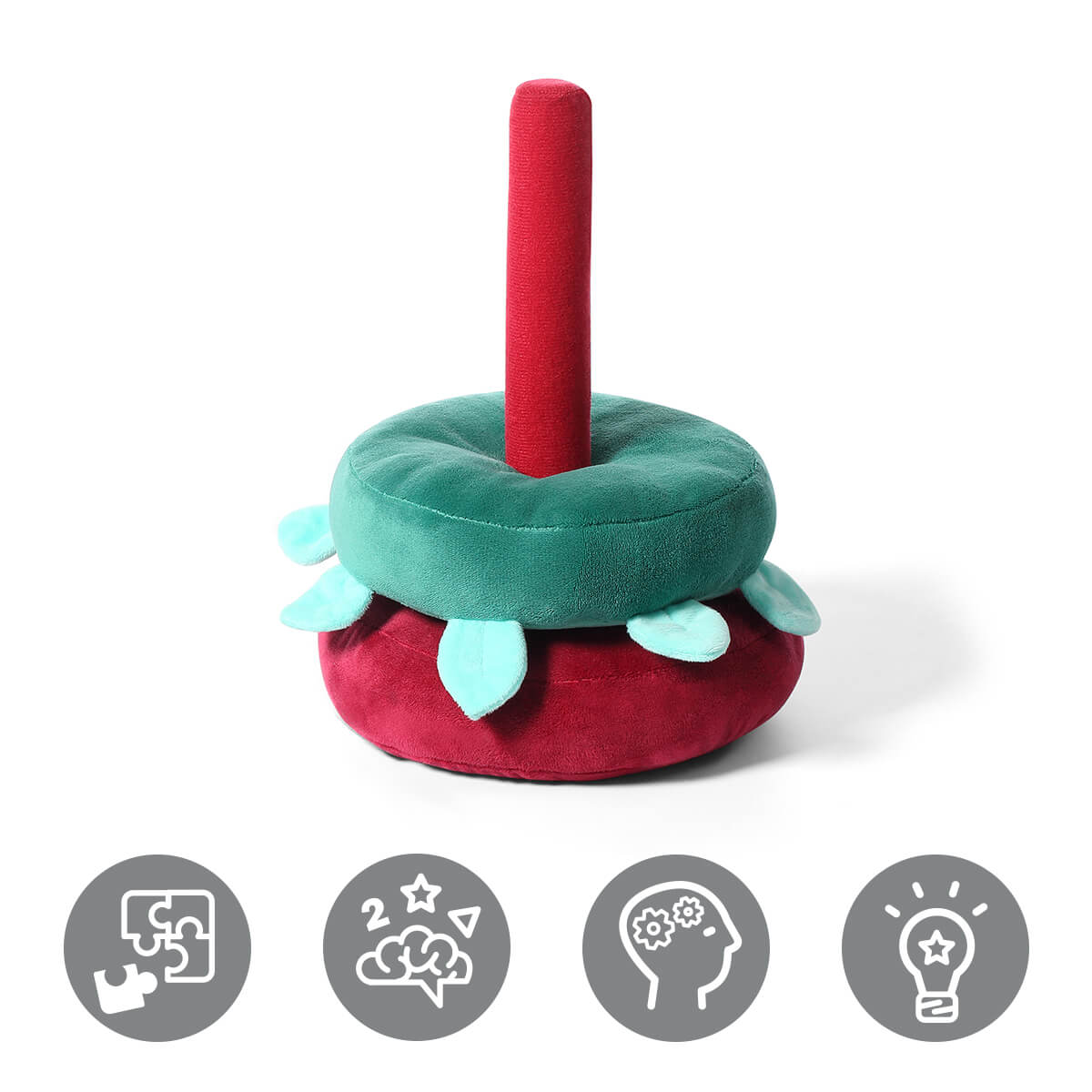 - MOŻLIWOŚĆ UKŁADANIA - Zabawka składa się z kilku części, które można ułożyć w wieżyczkę. Dzięki temu dziecko stymuluje swój mózg i rozwija zdolności poznawcze, a także uczy myślenia przestrzennego.