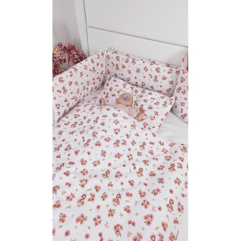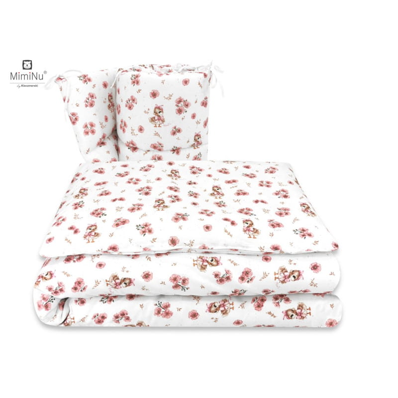 Pościel 3-elementowa 120x90 z ochraniaczem – Kaczuszki Pudrowy Róż | MIMINU