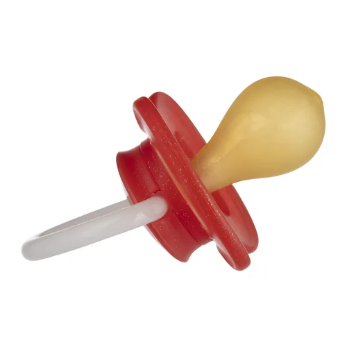 Czerwony smoczek uspokajający KOSMICZNY marki Canpol Babies został wykonany z wysokiej jakości kauczuku i wyposażony w okrągłą gumkę, delikatną dla buzi i dziąseł niemowlęcia. Smoczek posiada świecący uchwyt, dzięki któremu łatwo go znaleźć w ciemności.